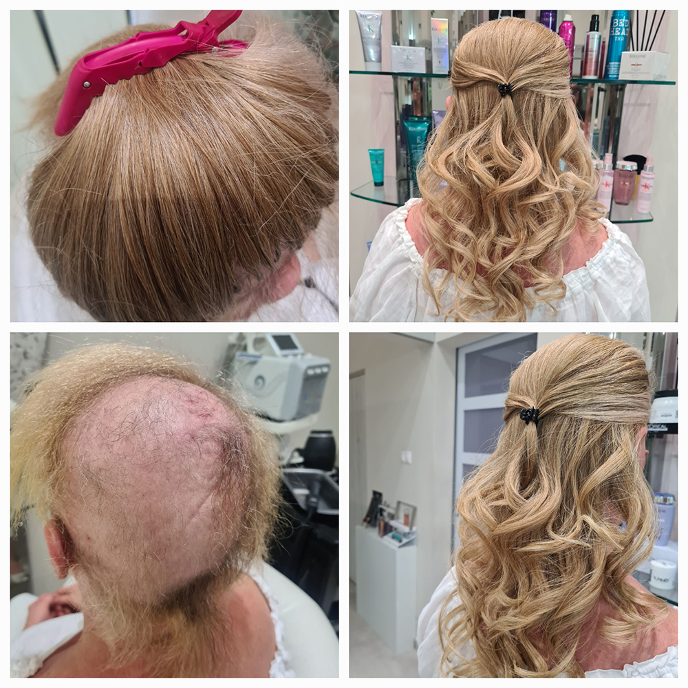 - 2–3 cm-es saját hajra is gyönyörű hajkoronát tud felépíteni