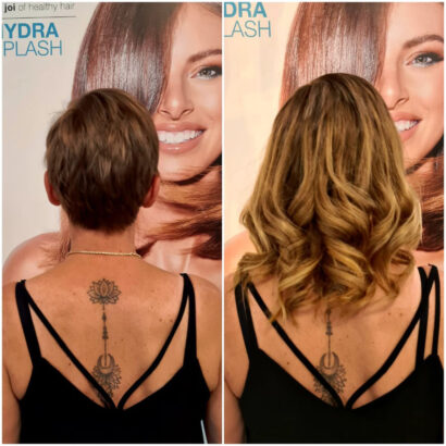 - 2–3 cm-es saját hajra is gyönyörű hajkoronát tud felépíteni